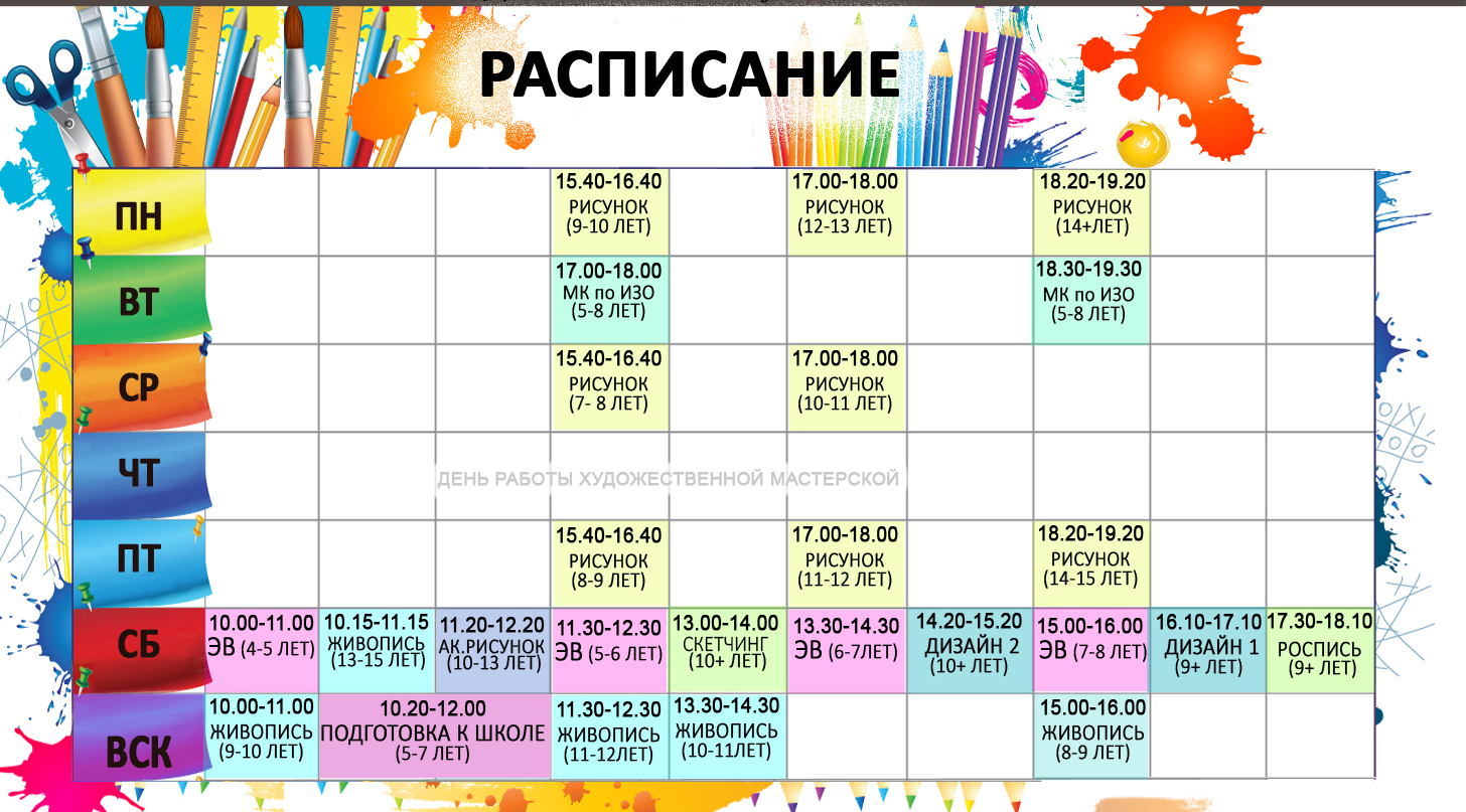 - дружелюбная рабочая художественная атмосфера, что дает полное погружение в мир искусства :)